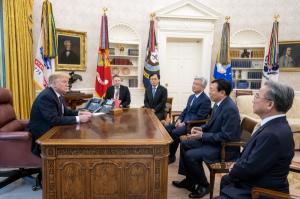 [뉴스포스트=홍여정 기자] 미국을 방문 중인 신동빈 롯데그룹 회장이 13일(현지시간) 백악관에서 도널드 트럼프 미국 대통령과 만나 투자 확대 및 협력 방안 등에 대해 논의했다.14일 롯데지주에 따르면 이날 면담 자리에는 미국 매슈 포틴저 국가안전보장회의(NSC) 아시아 담당 선임보좌관과 조윤제 주미대사, 김교현 롯데화학BU장, 윤종민 롯데지주 경영전략실장 등이 참석했다.우리나라 재계 총수가 백악관에서 트럼프 대통령과 면담을 한 것은 이번이 처음이다.이 자리에서 신 회장은 지난 9일 준공한 미국 남부 루이지애나주에 위치한 에탄크래커