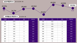 [뉴스포스트=강은지 기자] 12일 질병관리청에 따르면 이날 오전 0시 기준 국내 코로나19 일일 신규 확진 환자 수는 3만 5906명이다. 국내 발생 확진자는 3만 5894명, 해외 유입 확진자는 12명이다. 위중증 환자는 354명이다.지역별 신규 확진자 수는 ▲서울 5695명 ▲경기 8392명 ▲경남 2258명 ▲부산 1742명 ▲울산 965명 ▲대구 1888명 ▲강원 1322명 ▲경북 2627명 ▲충북 1398명 ▲대전 1282명 ▲인천 1683명 ▲광주 1291명 ▲전남 1486명 ▲전북 1464명 ▲충남 1605명 ▲제주 4