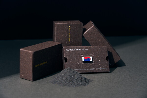 태극기 배지는 K9자주포 제작에 쓰이고 남은 철을 재활용해 만들었다. 자주국방과 'K-방산'을 상징하는 '자유수호의 철'로 대한민국의 자유를 지키다 전장에 묻힌 6.25 호국영웅을 끝까지 기억하겠다는 의지를 담았다.
