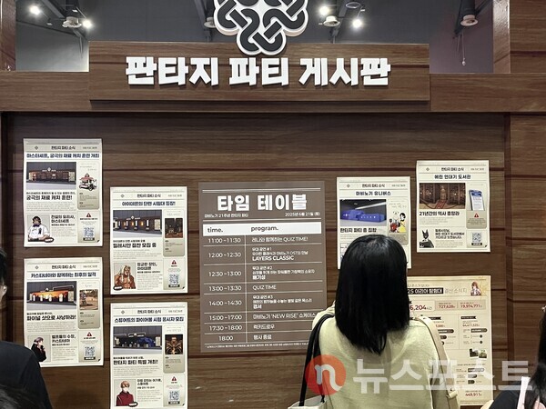 행사장 중앙에는 '모닥불 정령 포토존'이 있었다. 팬들이 휴식을 취하거나 기념 사진 촬영이 가능한 공간이다. 그 앞에 비치된 '판타지 파티 게시판'도 눈에 띄었다. 게임 속에서 퀘스트를 보는 기분으로 현장 프로그램과 무대 일정을 확인할 수 있어 몰입감을 더했다.
