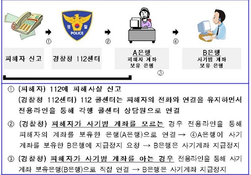 만일, 금감원, 검찰, 경찰 등 정부기관의 직원이라고 하면서 개인․금융정보 유출에 따른 안전조치를 이유로 “예금을 현금으로 찾아서 가져와라”, “물품보관함 등에 넣어두라”, “특정계좌로 송금하라”고 한다면 100% 보이스피싱 사기조직이므로 절대 응하지 말고 즉시 경찰청(112)과 금융감독원(1332)에 신고해 주기 바란다고 강조했다.