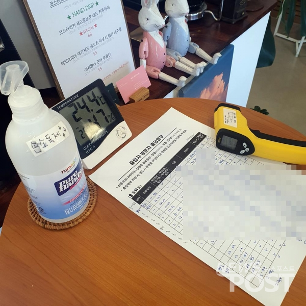 카페 입장 시 체온 측정 및 출입 명부 작성