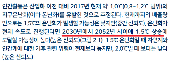 심 후보가 2030년을 언급한 이유는 해당 시점이 지구온난화의 ‘티핑 포인트’(어떤 현상이 서서히 진행되다 폭발적 변화를 일으키는 시점)가 될 수 있기 때문이다. 지난 2018년 48차 IPCC 총회는 2030년~2052년 사이에 지구 온도가 (산업 혁명 이전 대비) 1.5℃ 상승할 수 있다는 보고서를 발표했다. 1.5℃는 현재 인류가 정한 목표치다. 세계 각국이 탄소중립 선언, 국가온실가스 배출량 제한 등 1.5℃ 이상 상승을 막기 위해 노력하고 있다.
