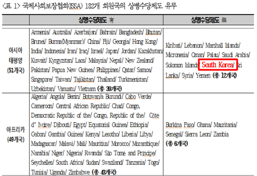 "상병수당 182개 국가 중 174개 국가가 실시한다"