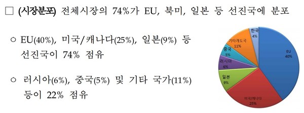 실제로 현재 원전 대부분은 선진국에서 가동되고 있다. 정부는 2020년 중반까지 해체대상 원전의 70% 이상이 선진국 소재일 것으로 전망하고 있다. 특히, 31년 이상 가동 중인 노후 원전은 북미 및 유럽 등 원전 선진국에 80% 이상 집중돼 있었다. 정량적 기술격차 역시 선진국 대비 82%로 평가되나, 상업용 원전 해체 경험이 많지 않아 실제 격차는 더 클 것으로 추정했다.